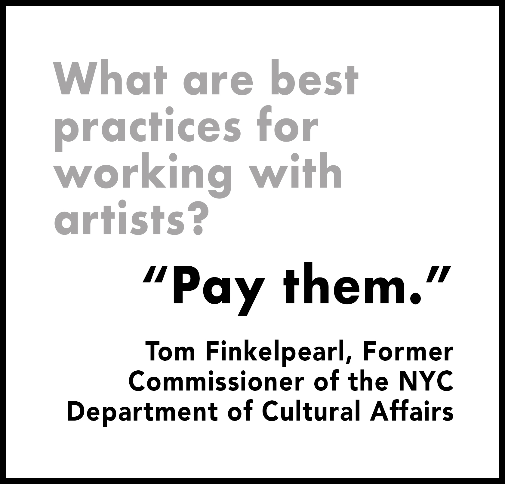 - Pay artists as you would any other highly skilled professional. They should not be considered an entry-level worker or one that should merely be given a token fee.